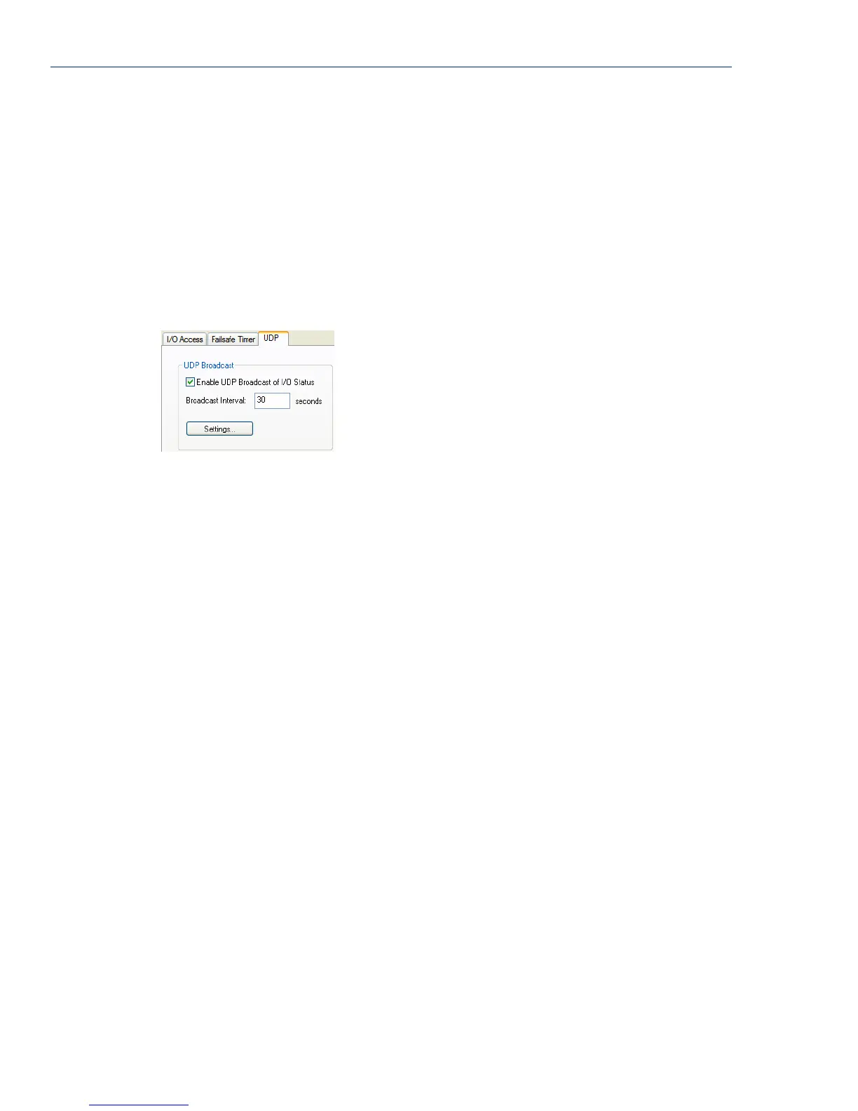 Broadcast Interval Enter the interval, in seconds, for UDP broadcasts of I/O channel status (data).