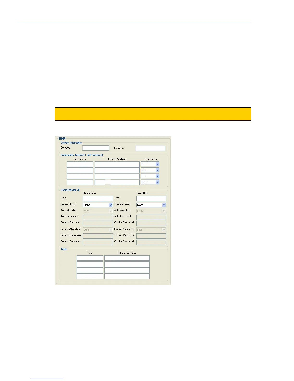 If you are using SNMP to manage/configure the IOLAN, or to view statistics or traps, you must set