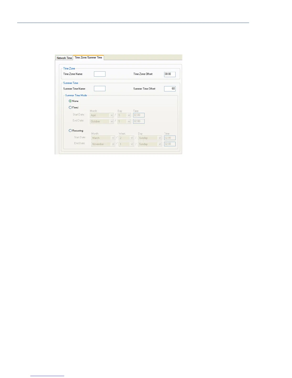 Time Zone/Summer Time Tab Field Descriptions