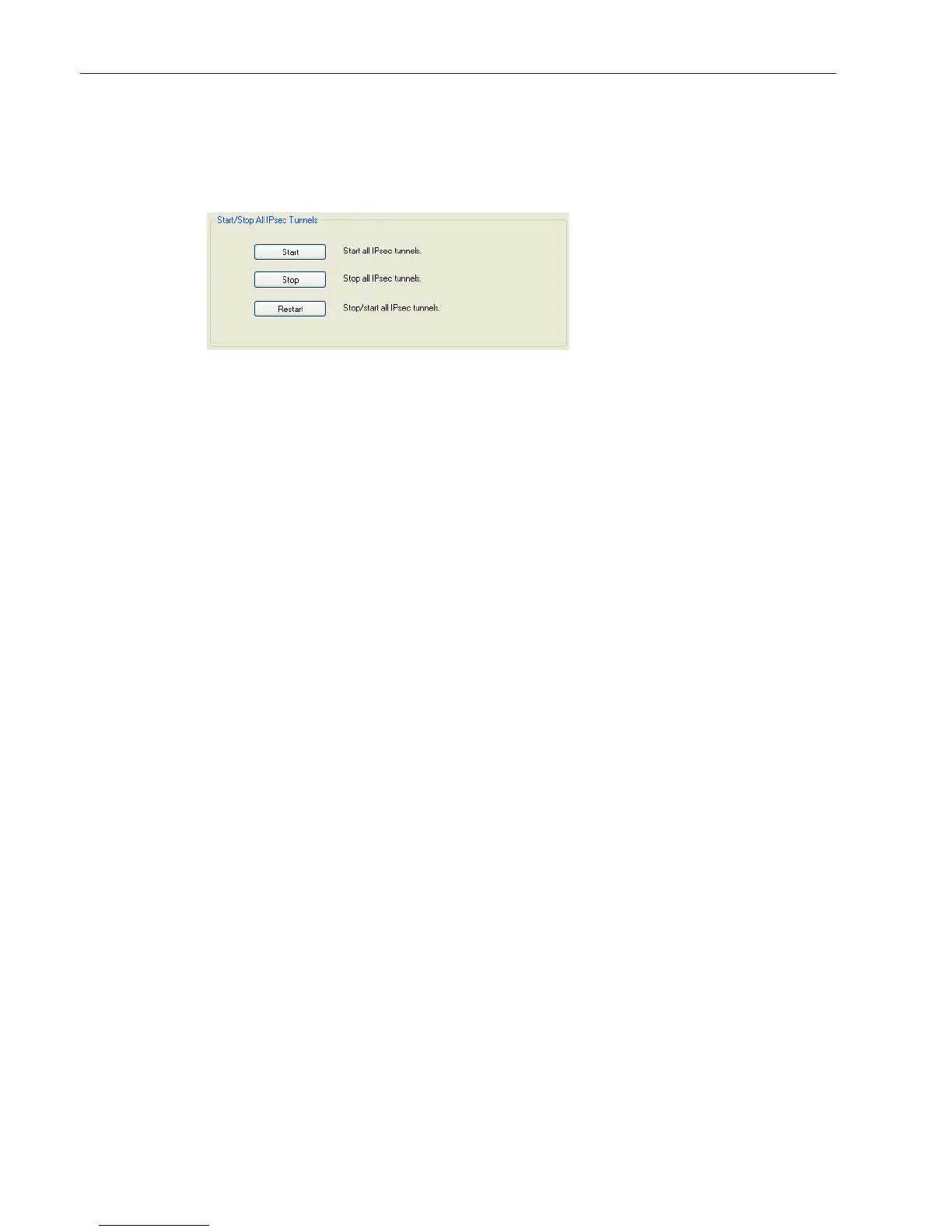 Restart Button Stops and then starts all IPsec VPN tunnels.