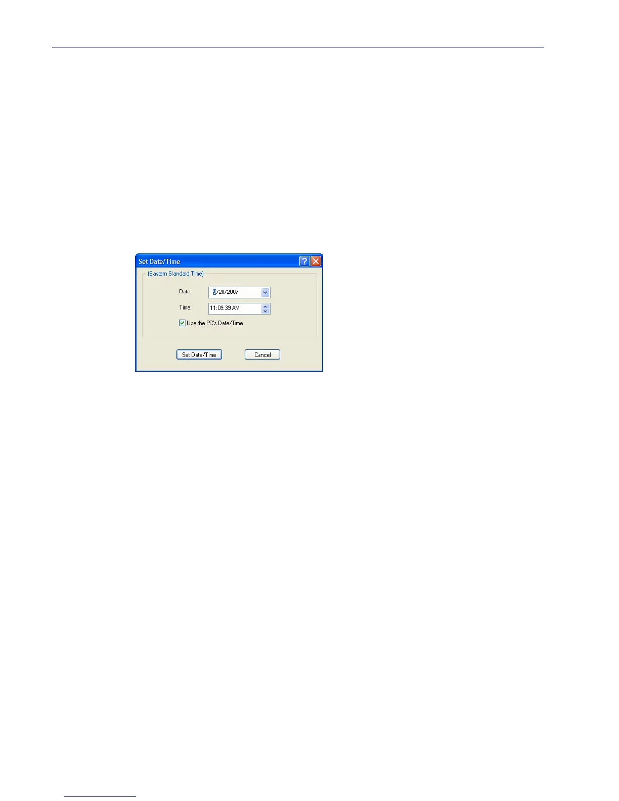 Administration, Date/Time. The Set Date/Time window is displayed.