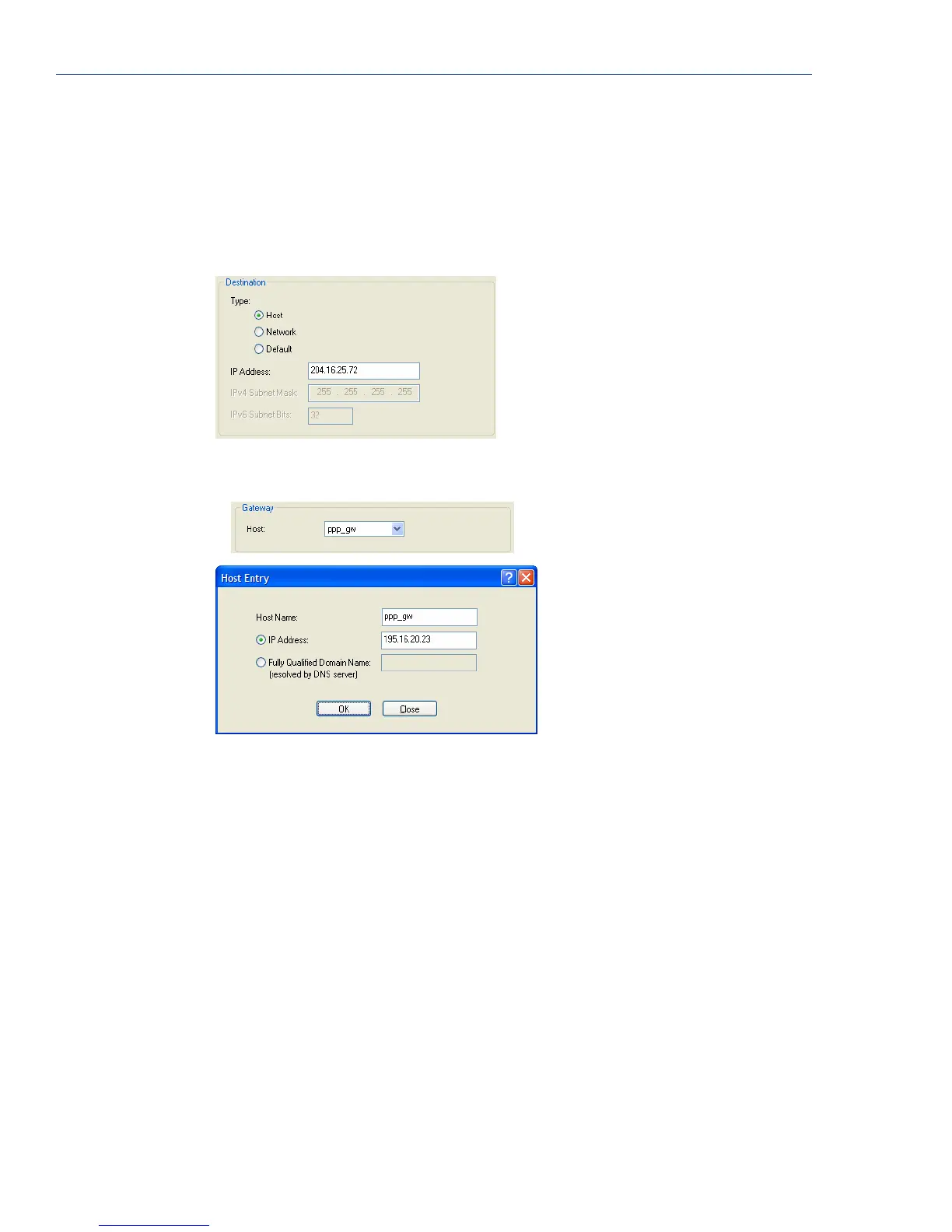 We want a specific host to the be destination, so we configured the Type as Host: