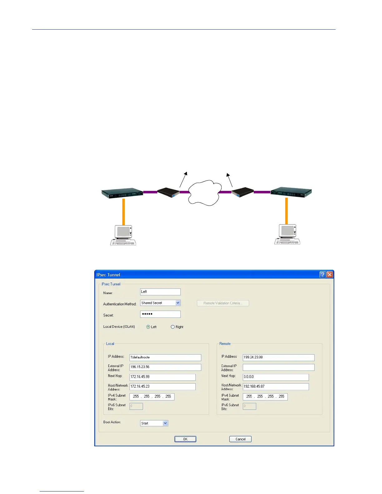 The following example shows how to configure two IOLANs to work as VPN gateways for a