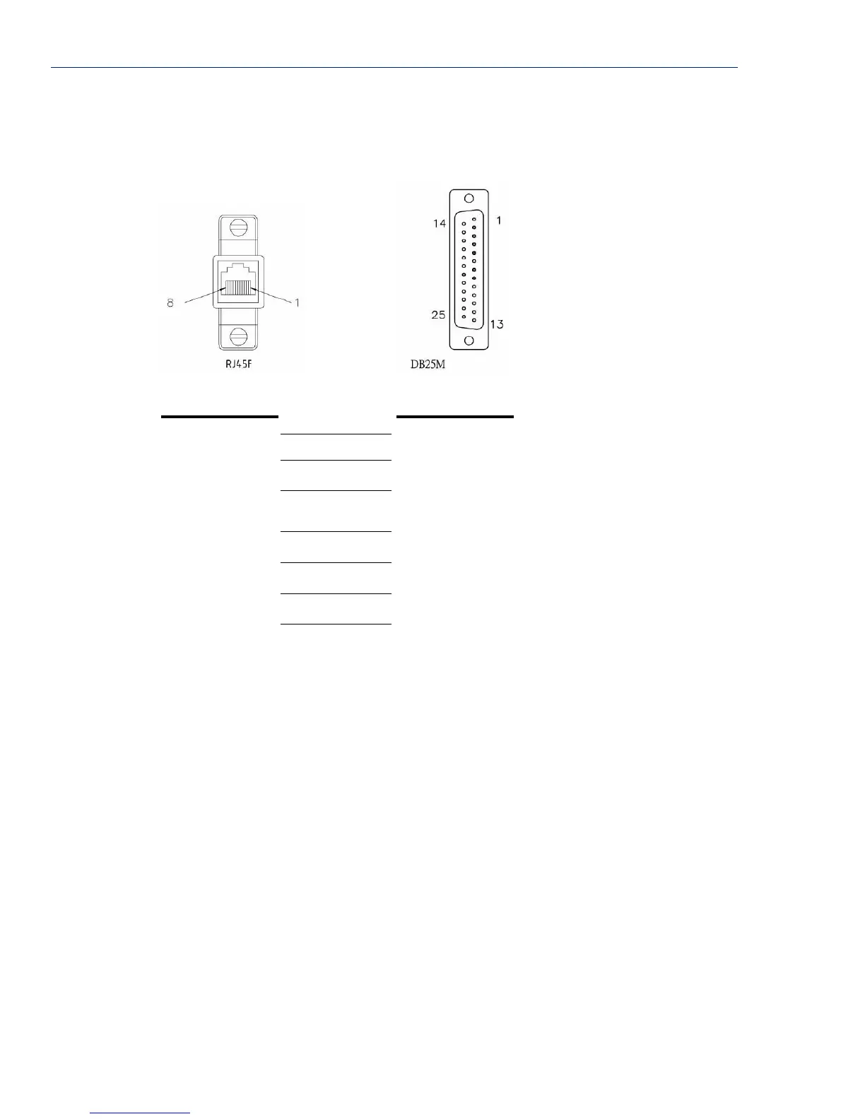 The following diagram shows the IOLAN RJ45FJDB25M DCE modem adapter pinouts. This is