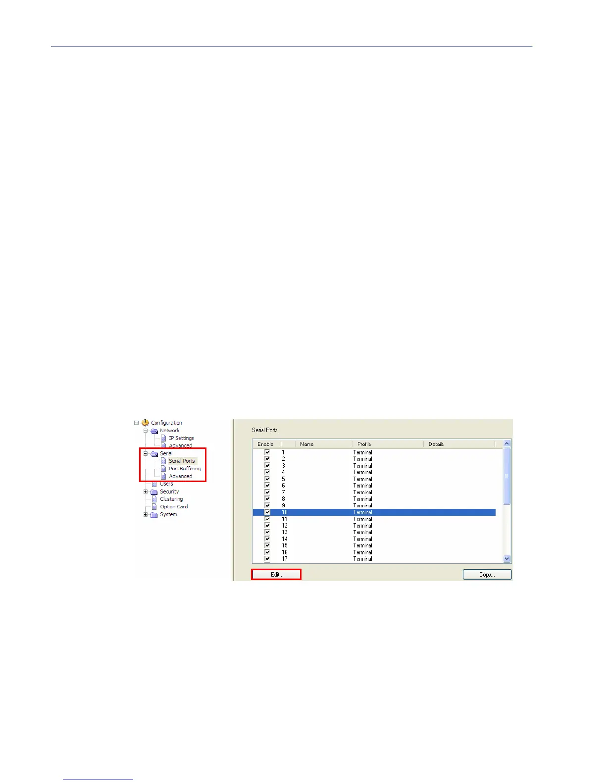 Serial, Serial Ports in the navigation pane. Highlight the