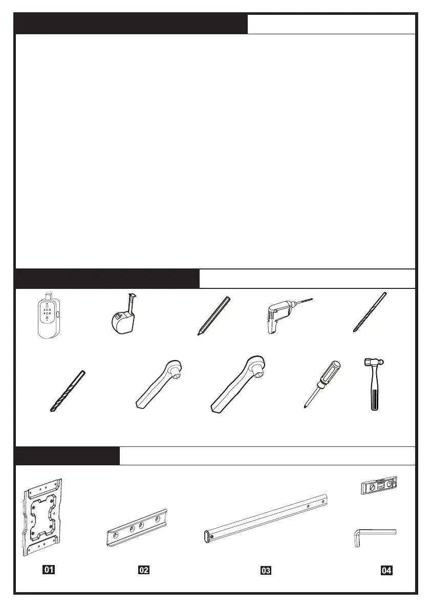 •Check package contents against Supplied Parts and Hardware Lists to assure