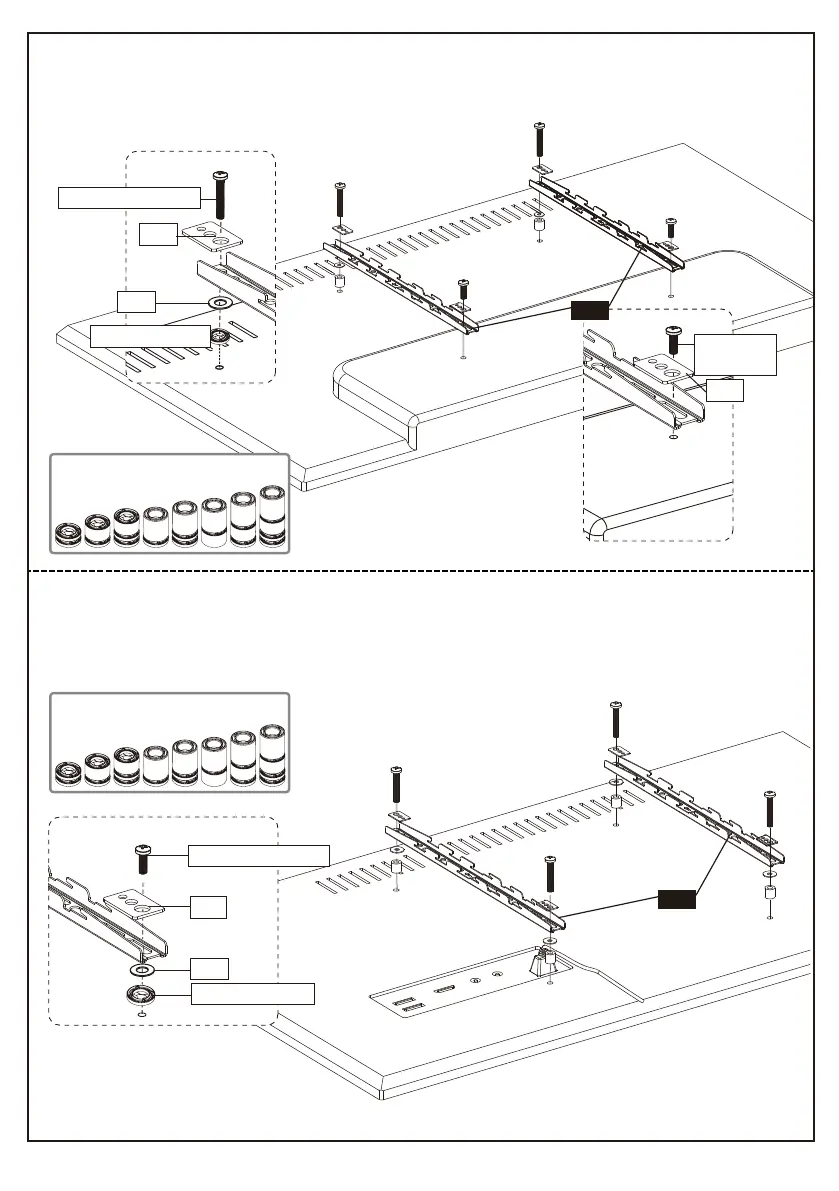 For cable interference or inset holes, use spacers [TV8/TV9/TV10] to