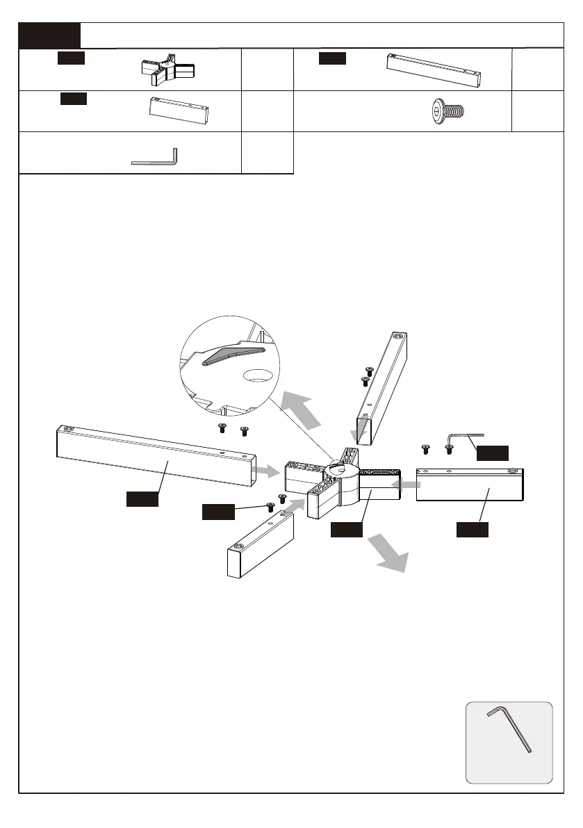 Secure the short square tubes [03] and long square tubes [02] to the tube