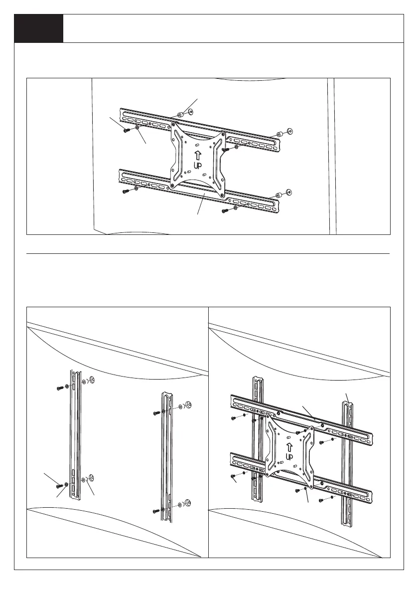3. Attach TV Plate (b) to Horizontal Bars, using Bar Bolts (C) and Bar Washers (D).