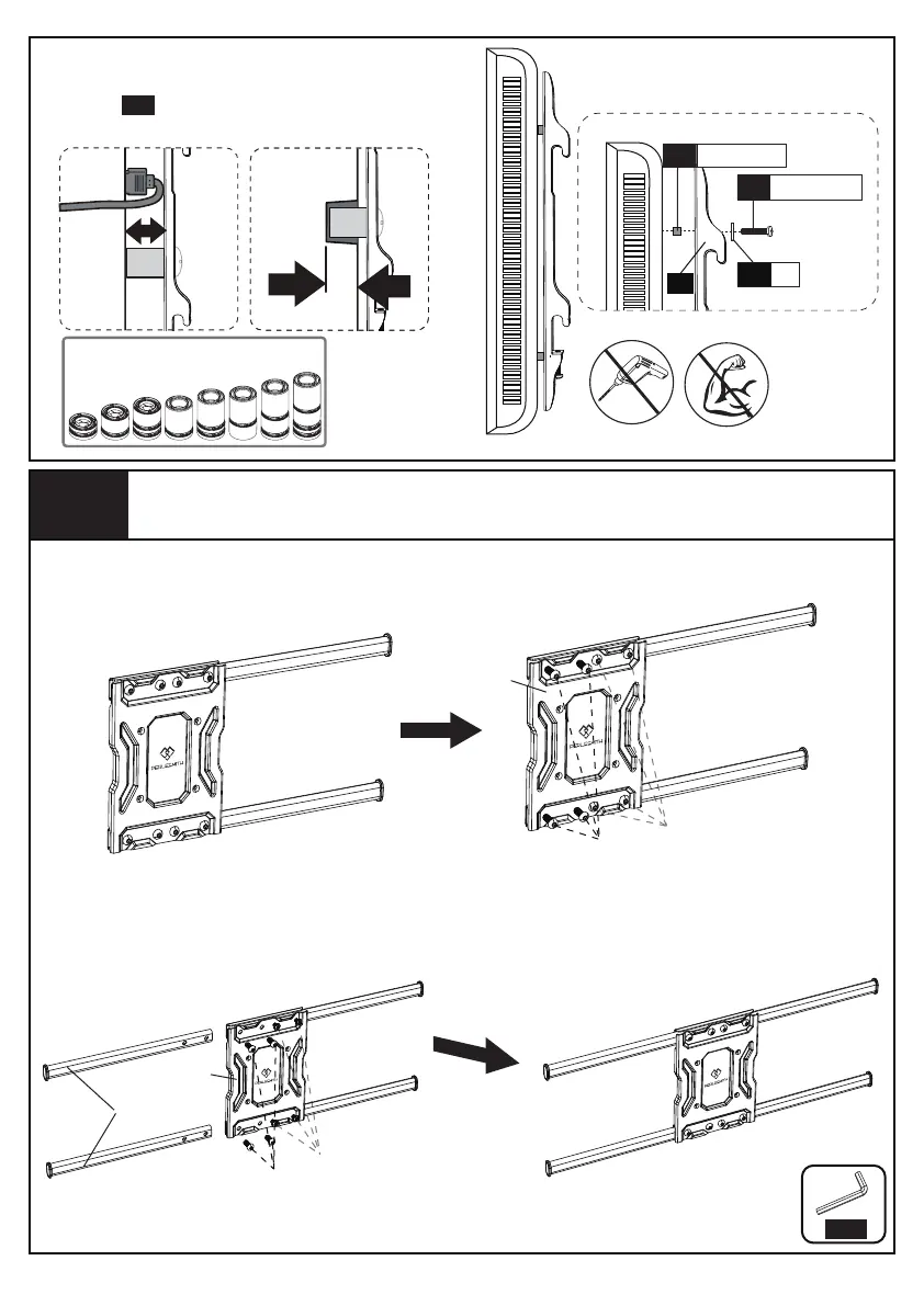 2-2 Insert the arm extensions [03] into the front support [01]. Then tighten the