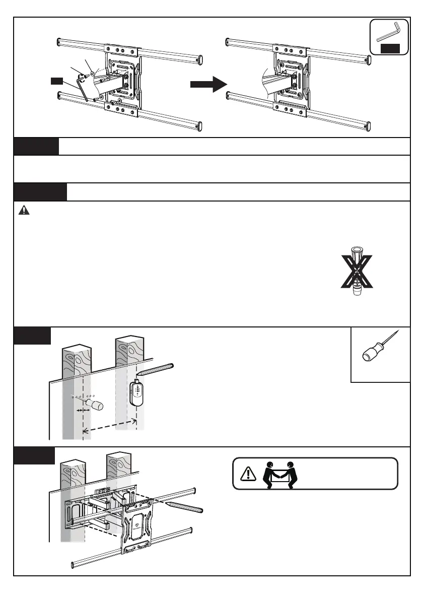 2-3 Secure the front support assembly to arm assembly/wall plate