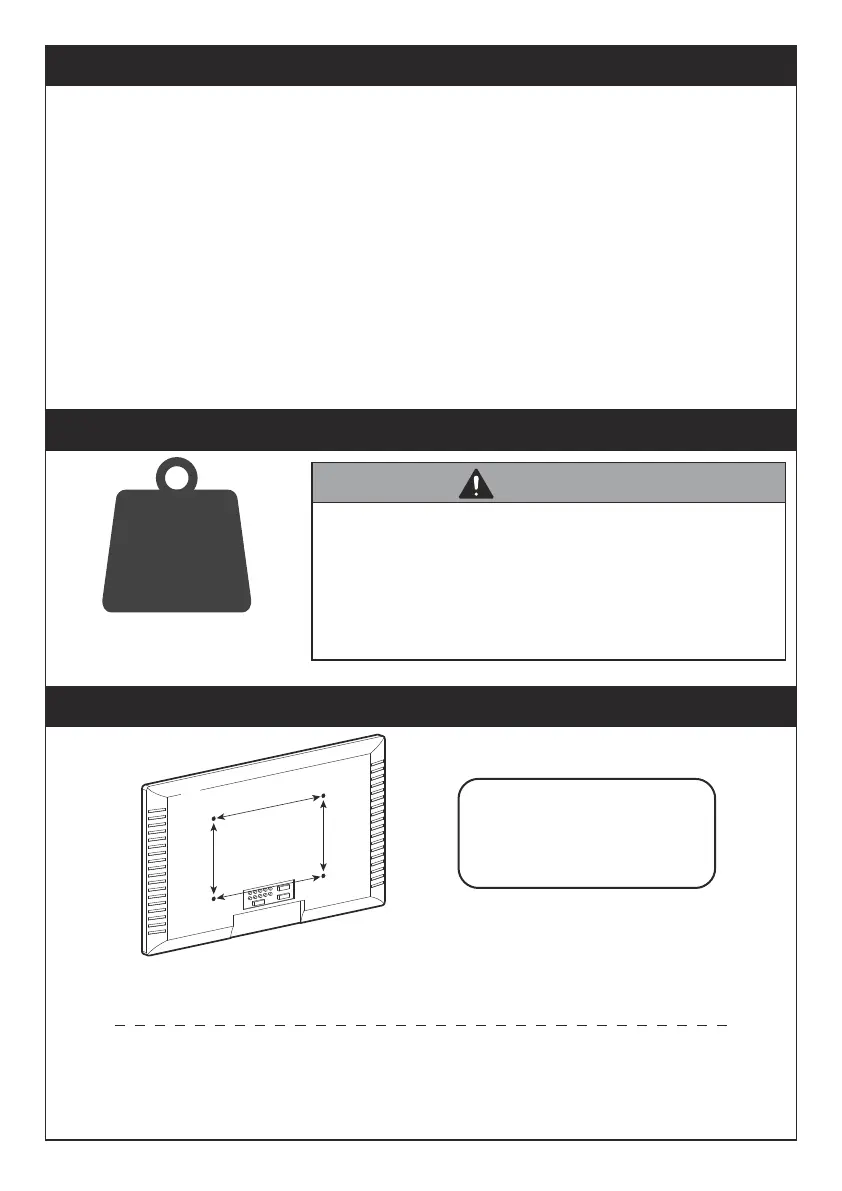 • The wall must be capable of supporting five times the weight of the TV and