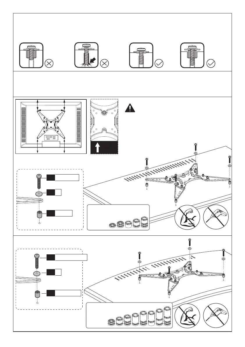 Bolt length: Verify adequate thread engagement with bolts or bolts/spacers