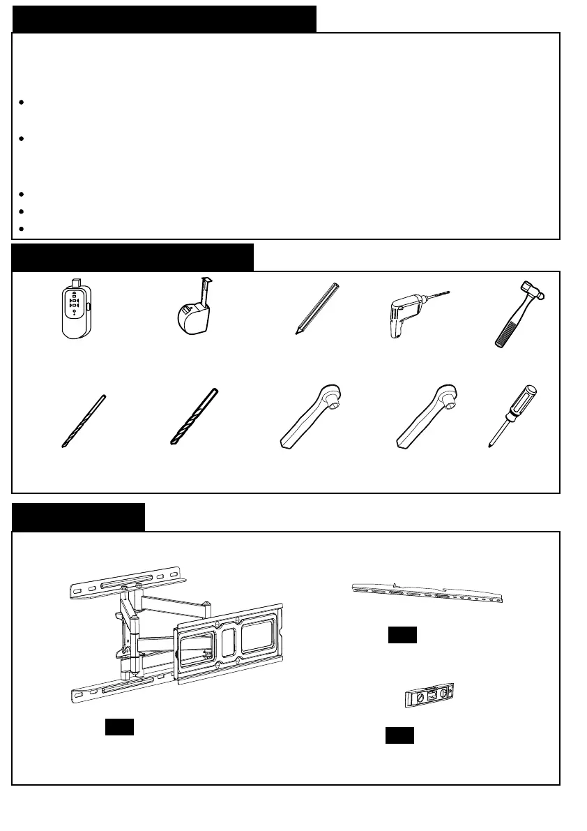 Do not install or assemble if the product or hardware is damaged or missing. Not all parts and