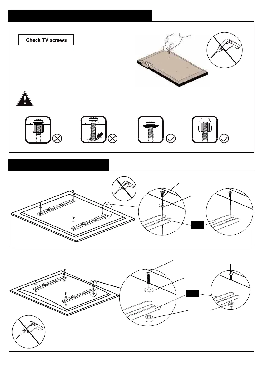 When attaching brackets to the flat screen, be careful not to over tighten screws and be