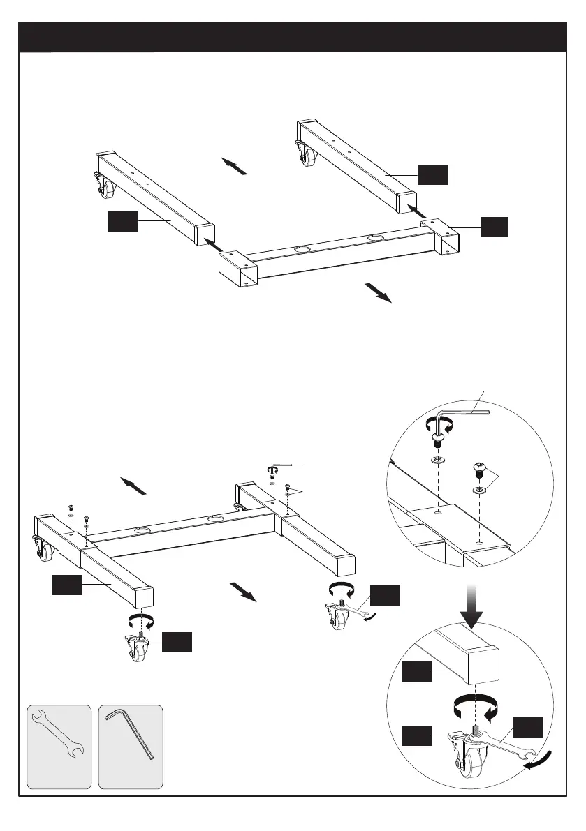 [Z-I]. Attach casters [04] to the square tubes [02] using the provided wrench [11].