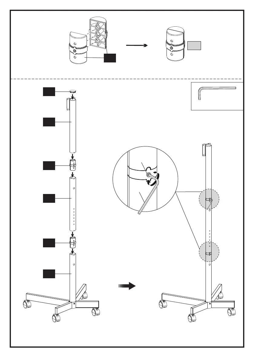 Secure the middle pole [05] and upper pole [07] to the lower pole [04], then attach the