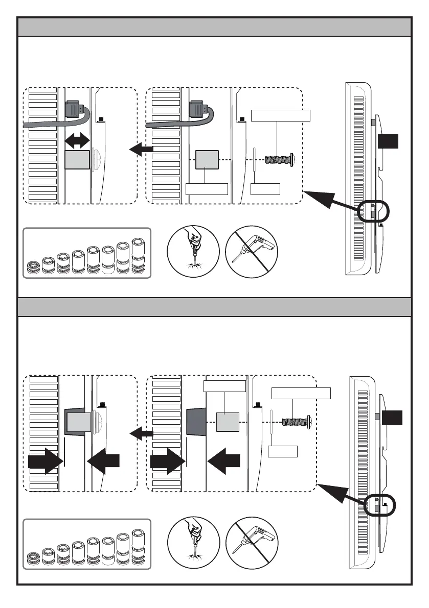 Use spacers [F1], [F2] or [F3] to create extra space between the TV and TV brackets.