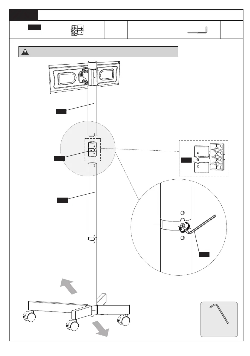 Note: Make sure the TV plate faces the front side of the TV cart.