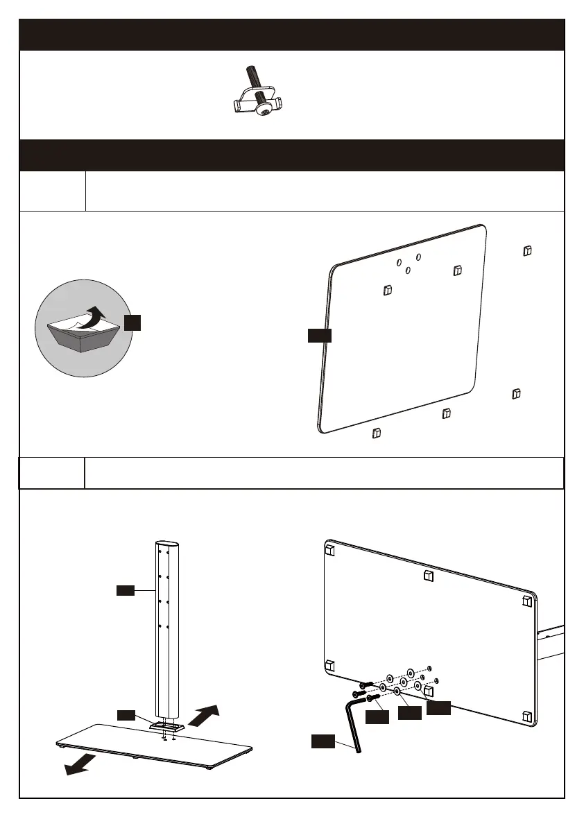Attach the tempered glass base by using bolts [B], steel washers [D] and
