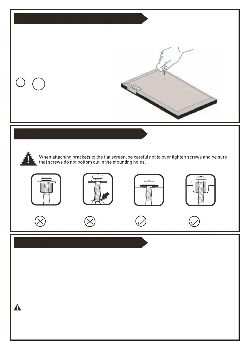 Thread screws by hand into the threaded holes on the back of your TV to select which screw