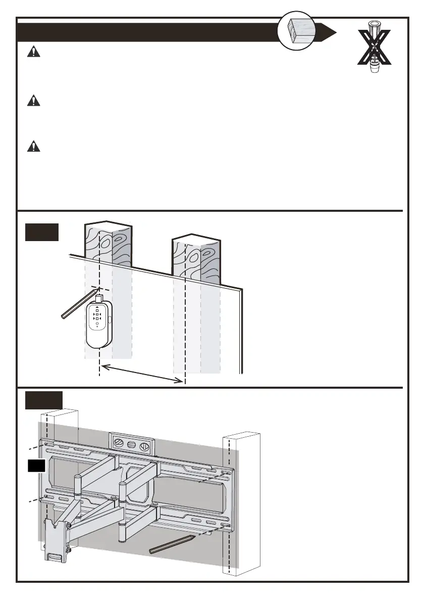 ● Dimensione minima del perno di legno: comune 2 x 4 pollici (51 x 102 mm)