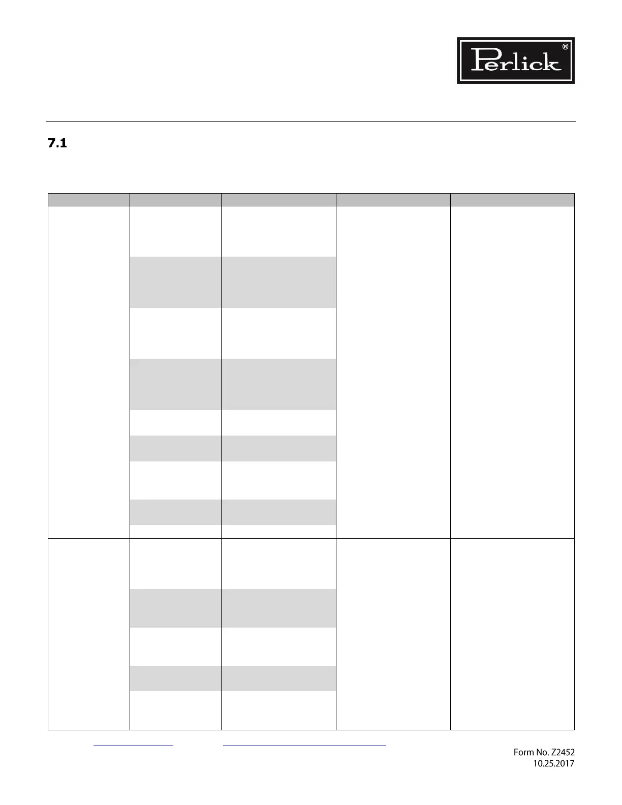 Perlick BBS60 - Table 7-1. Electrical Specifications