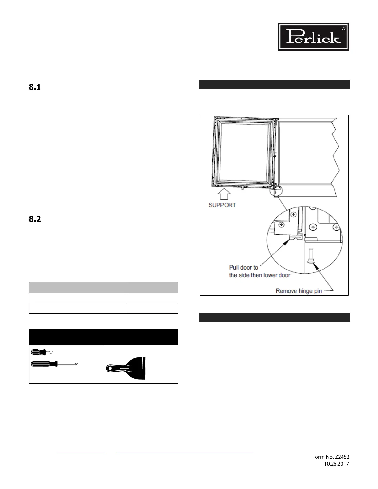 8.0 Service Instructions - Doors, Drawers, and Shelving