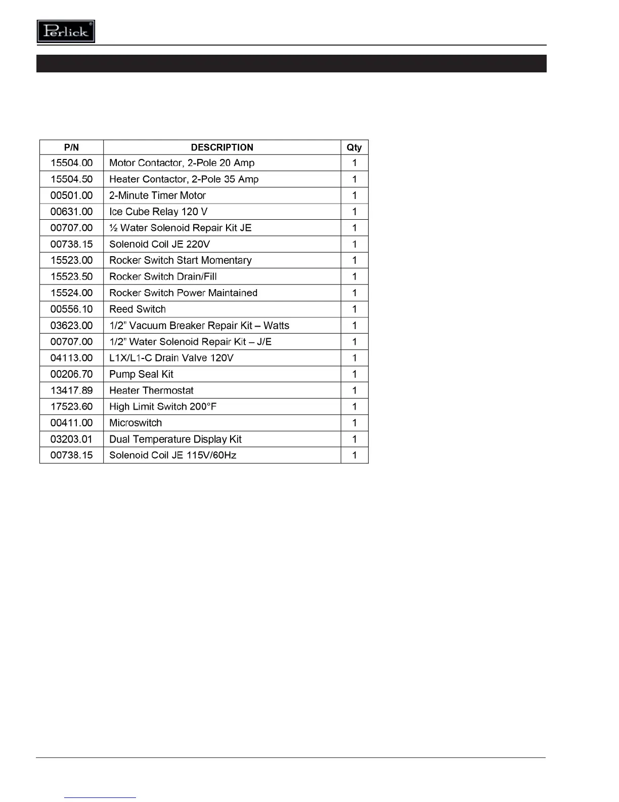 Perlick PKHT24 - Parts Kits