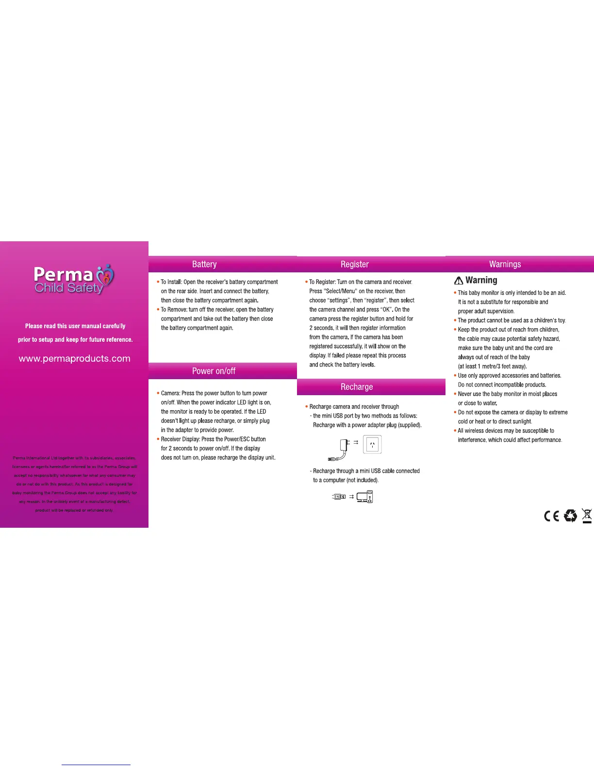 Perma 764 - Power and Battery Management; Battery Installation and Powering On;Off; Registering Your Device; Pairing Camera and Receiver