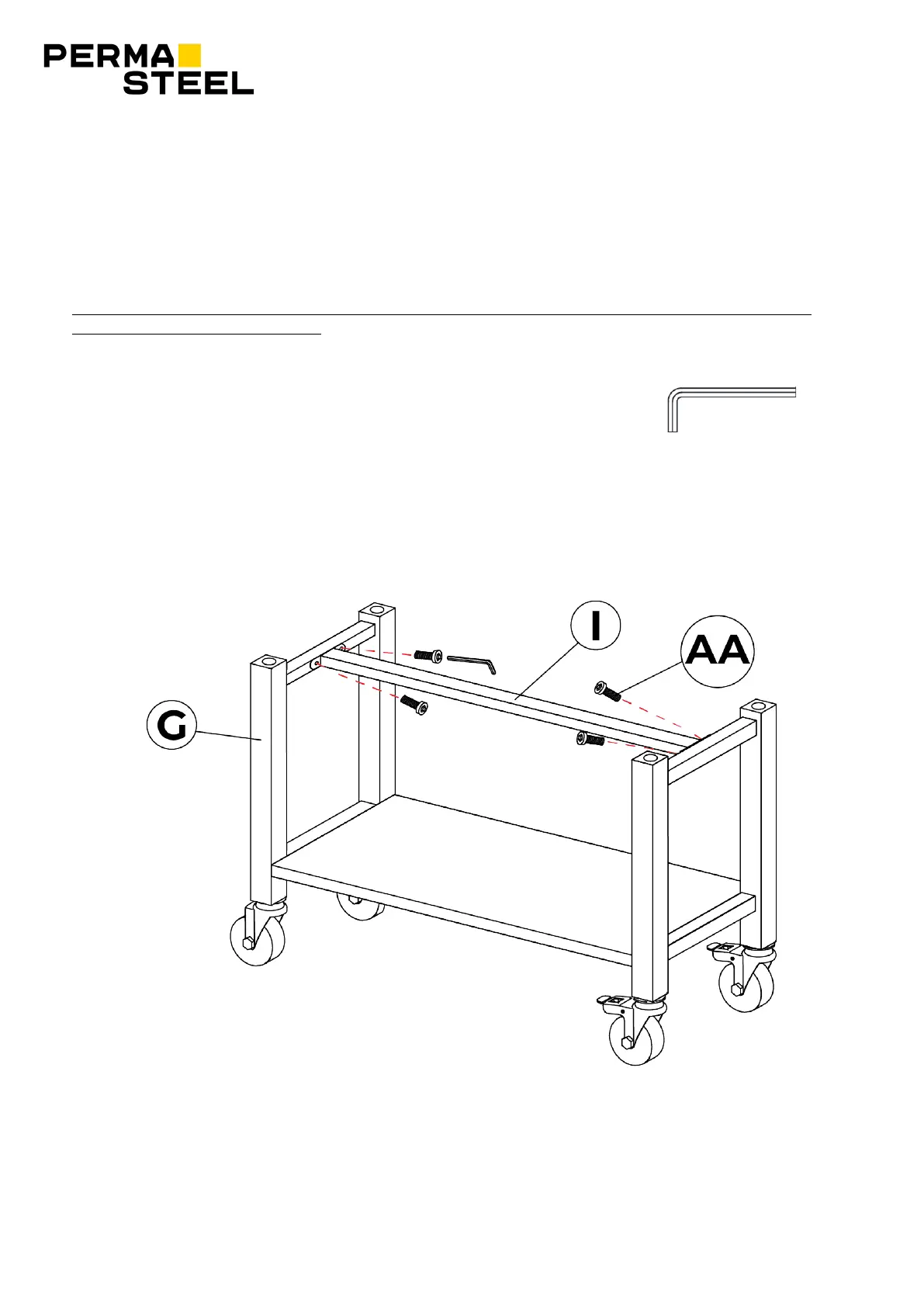 Fixez la traverse (I) aux cadres de pied (G) à l'aide de (4) boulons M6x13 mm (AA) et serrez à fond