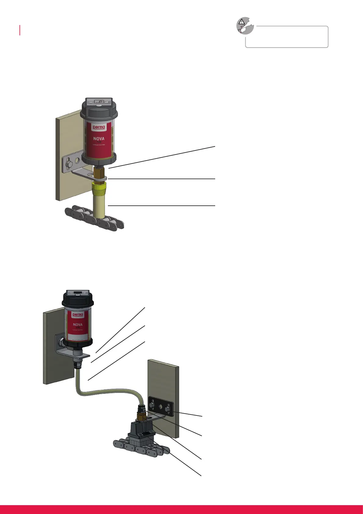All oil lled perma NOVA come with an integrated oil retaining valve. They can be installed directly on a lubrication brush