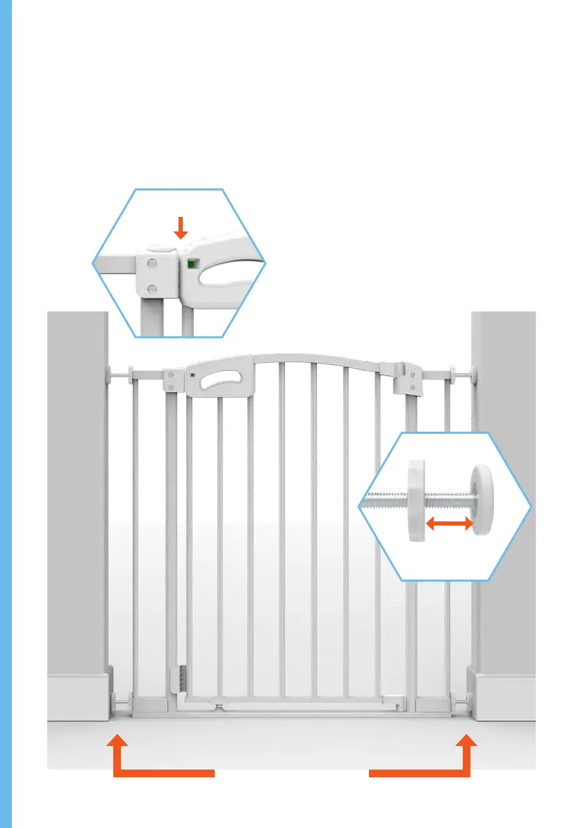Align gate with Mounting Cups and tighten Adjuster Screws by