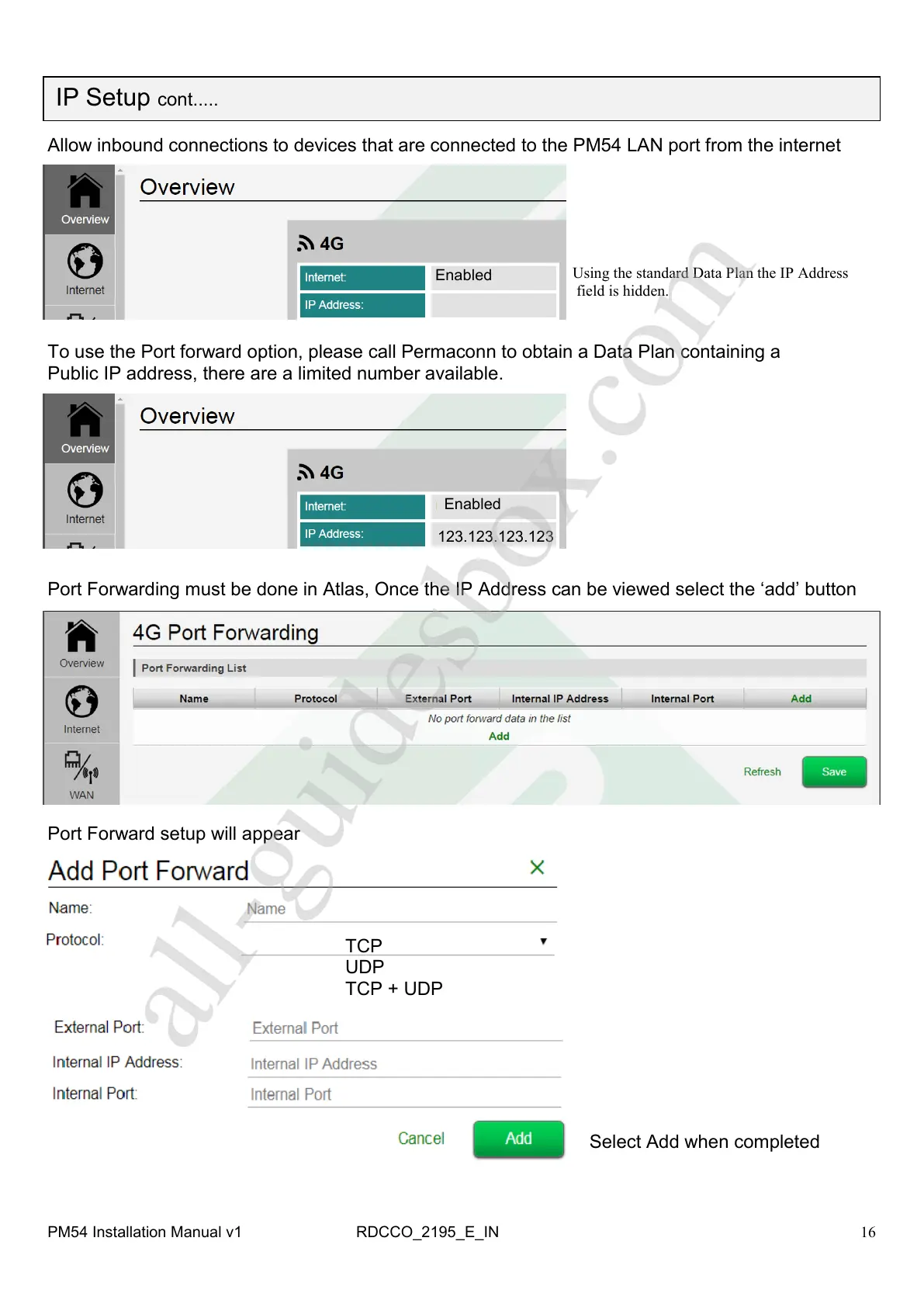 To use the Port forward option, please call Permaconn to obtain a Data Plan containing a