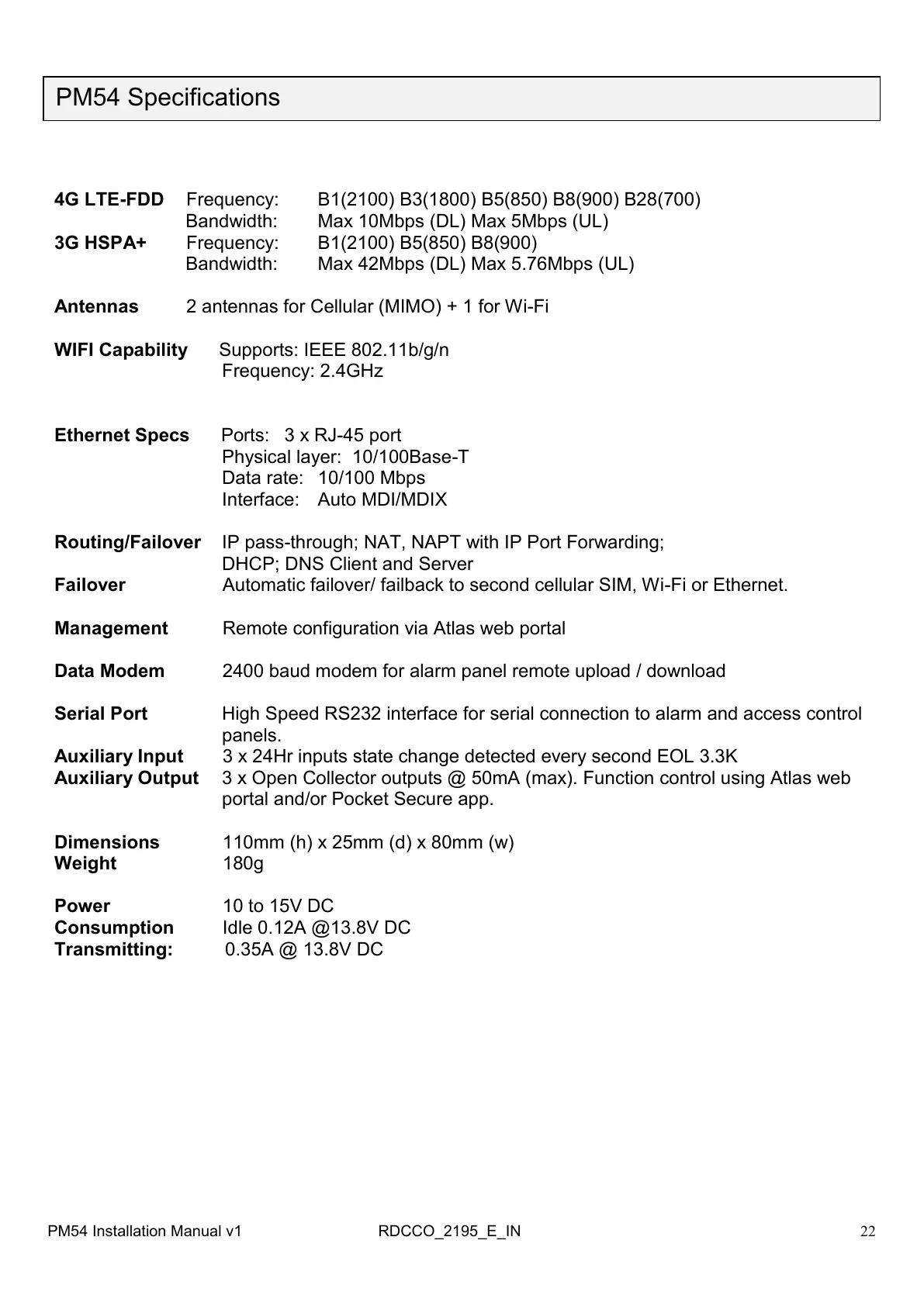 PM54 Installation Manual v1 RDCCO_2195_E_IN