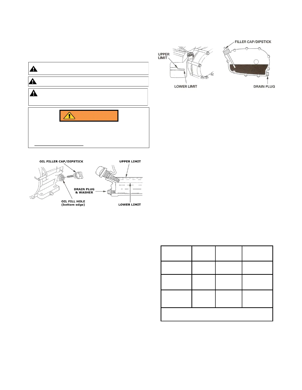 Table. Engine and Clutch Oil Type, Volume, and