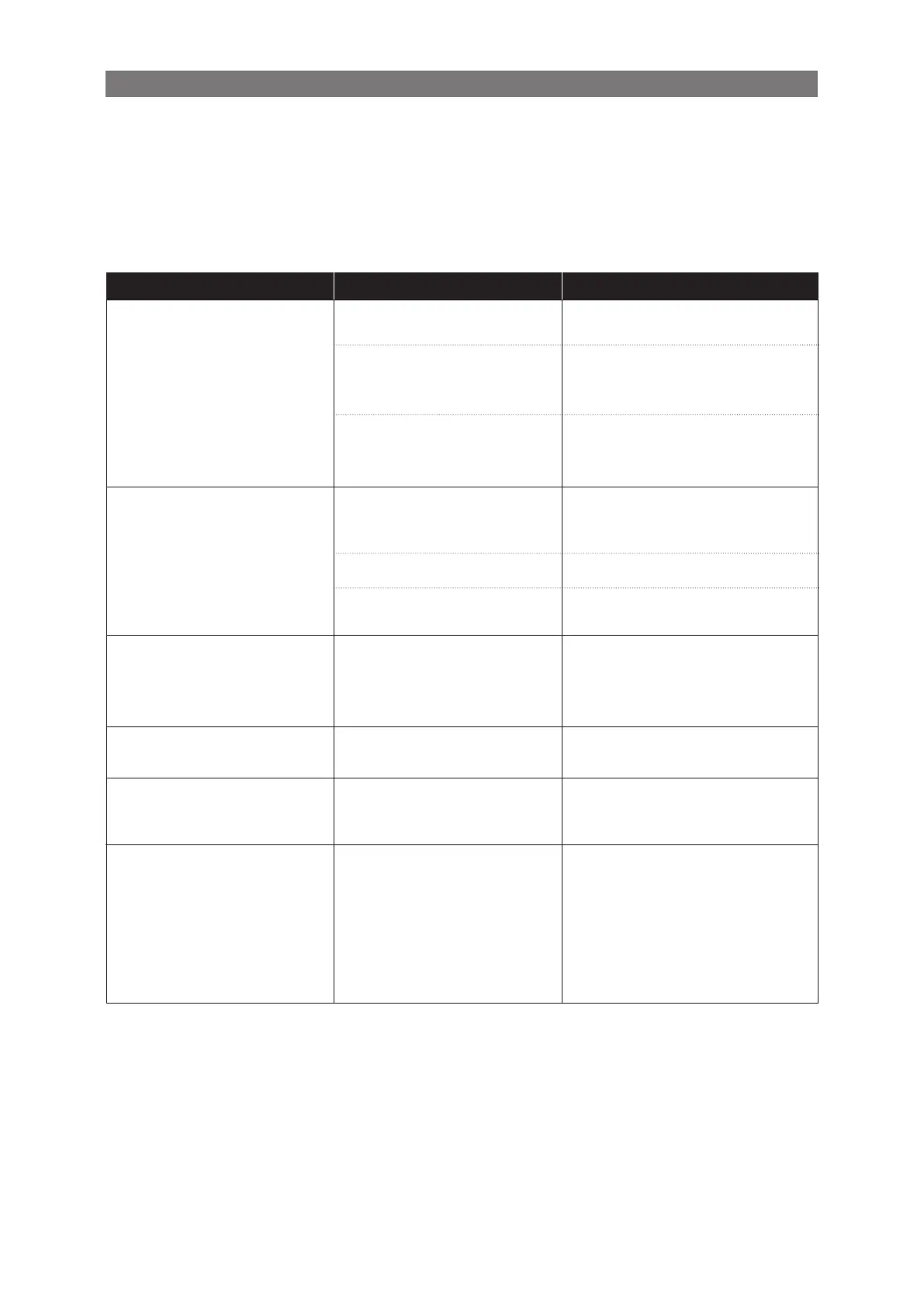 The following troubleshooting guide describes a number of faults and events which may occur when