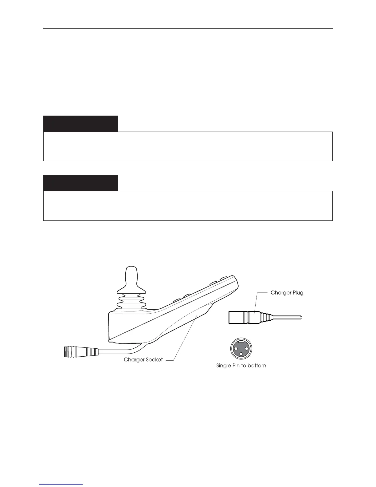 The wheelchair’s warranty will be voided if any device other than a battery charger supplied with the