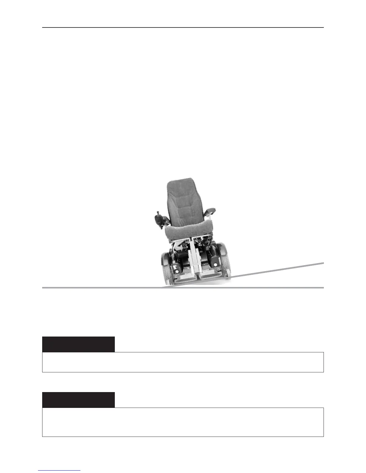 Do not drive the wheelchair on sideways slopes of greater than 10 degrees. There is a risk of
