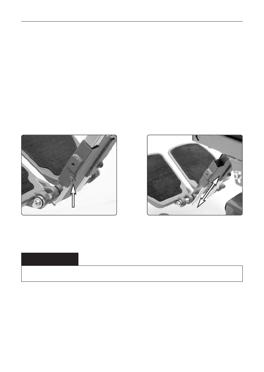 1. Loosen the locking screw for the legrest to be adjusted.
