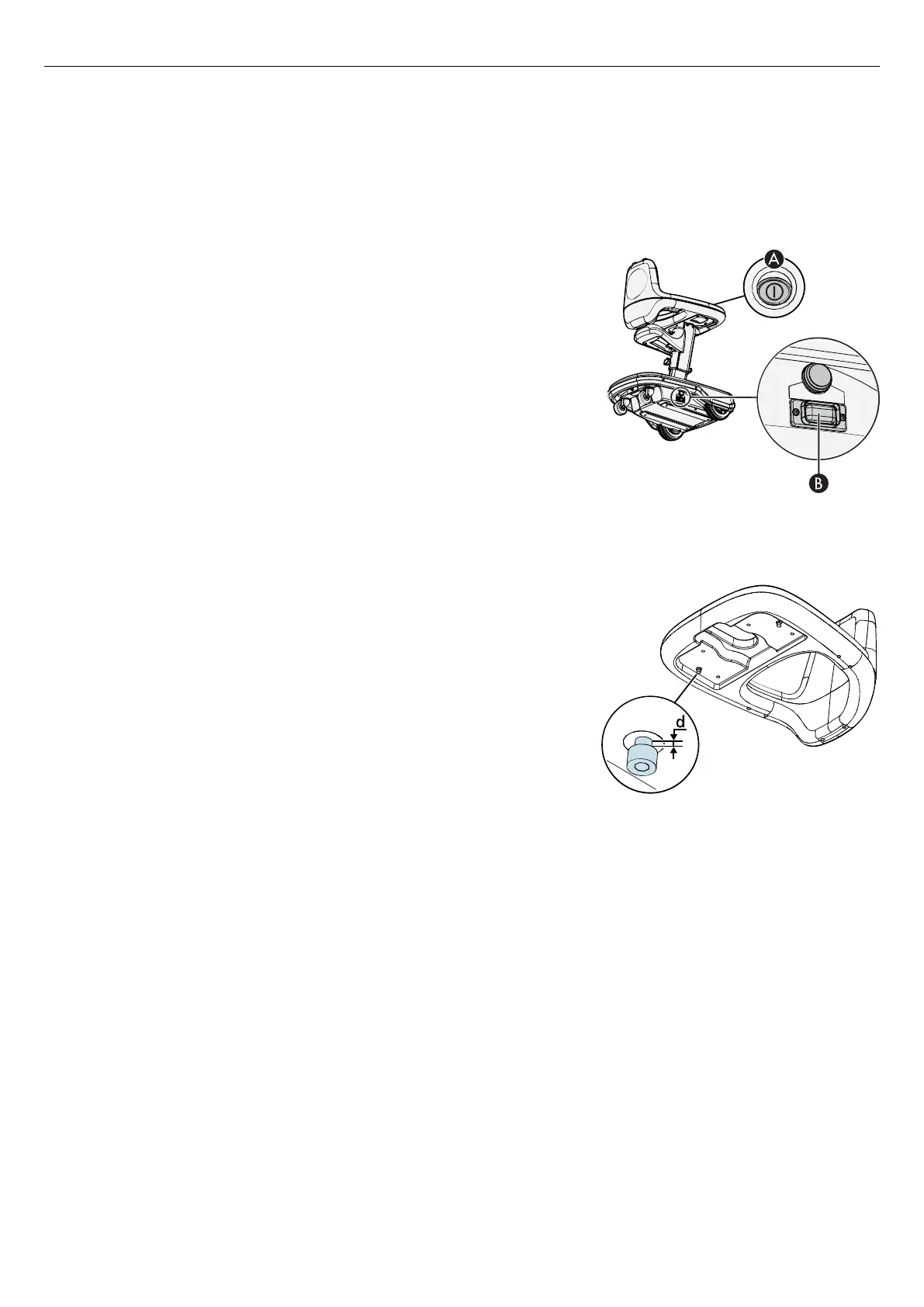 Figure 25. Positions for the on/off button (A) and the