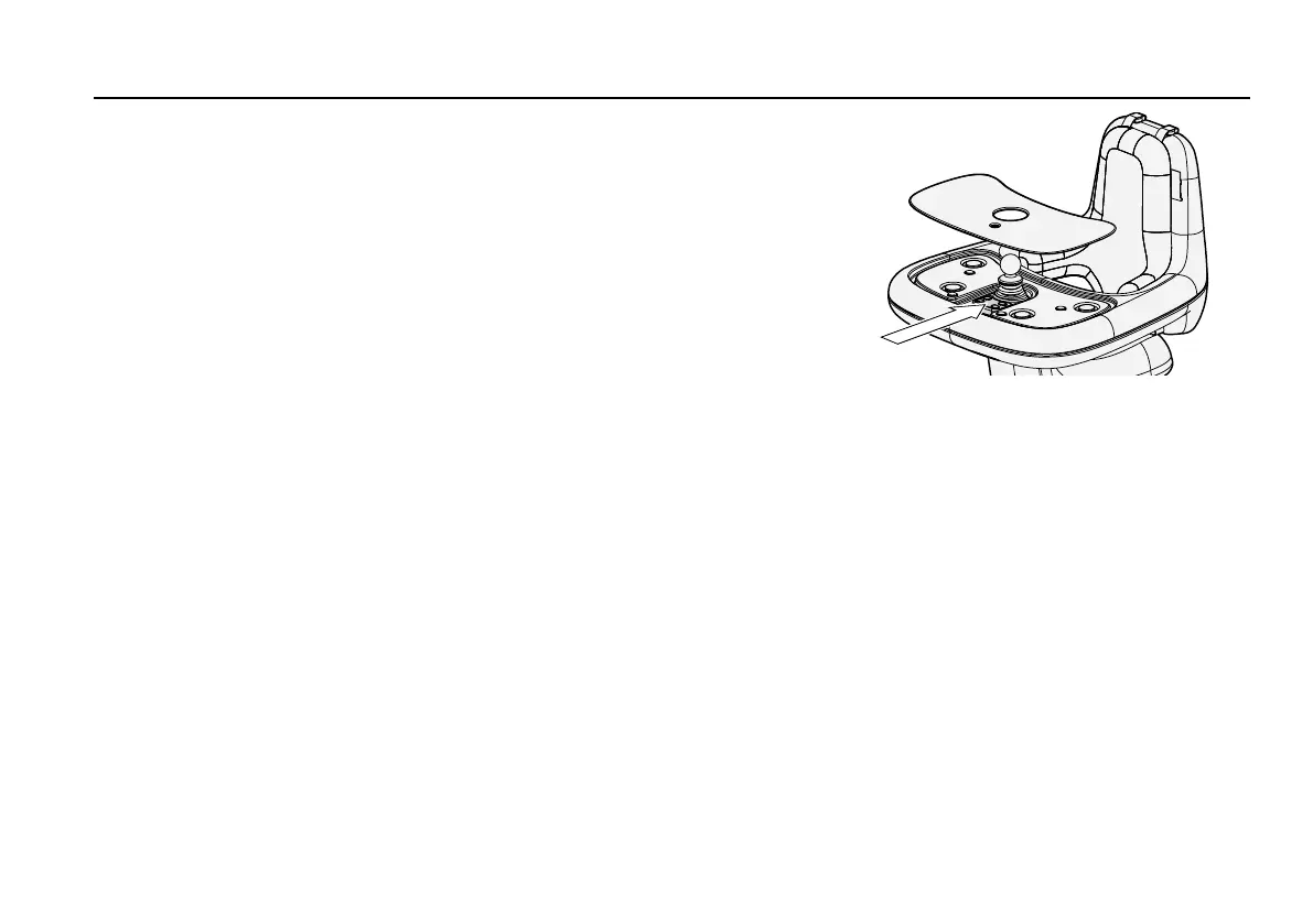 batteries. It has a joystick, function buttons, indicators for speed, a