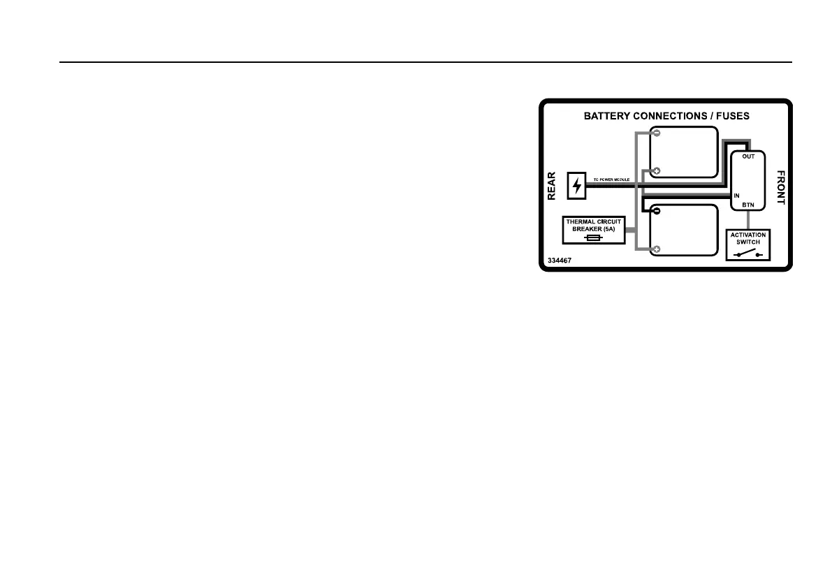 The label shows wiring diagram for the batteries and fuses. It
