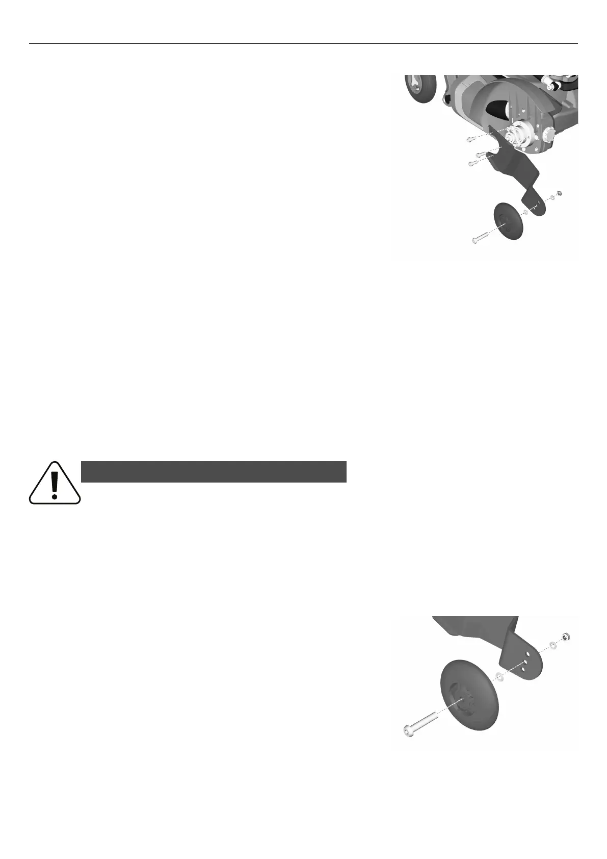 1. Assemble the support wheel unit using the three screws. Tighten the
