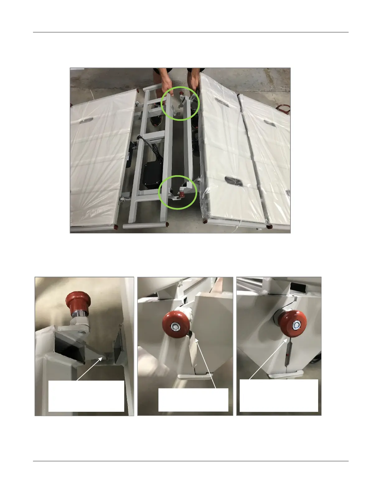 8 - Lift the head and foot decks so that you can align the locking inserts on the foot deck to