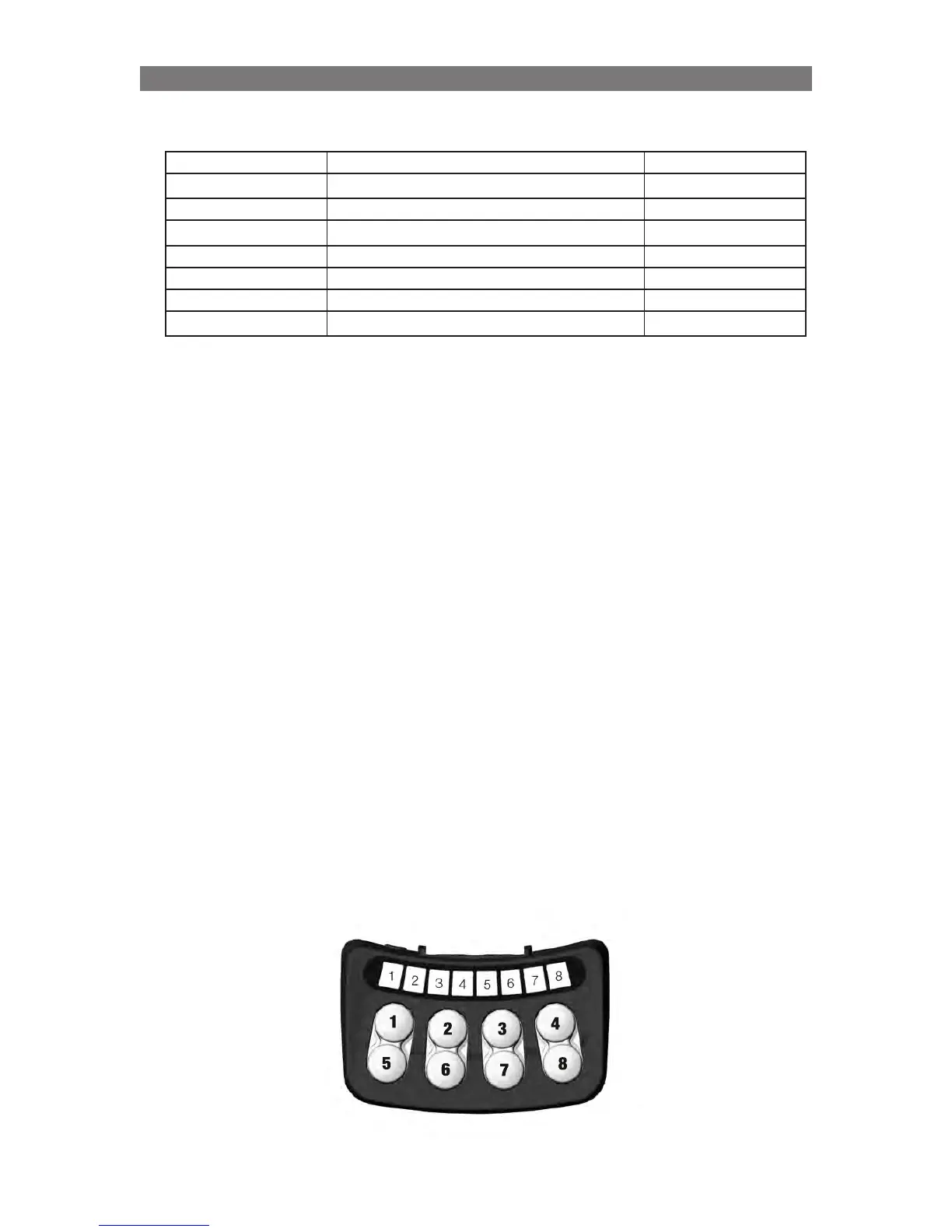 Decide what needs to be calibrated using buttons 1 – 7 as in table below