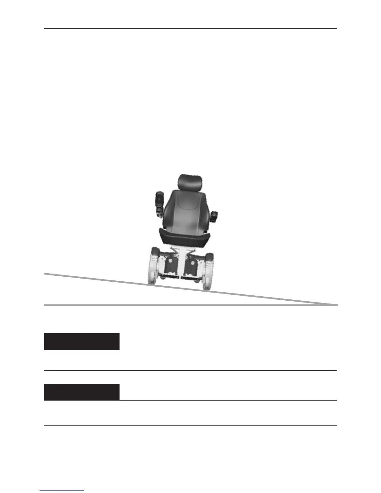 Do not drive the wheelchair on sideways slopes of greater than 6 degrees. There is a risk of