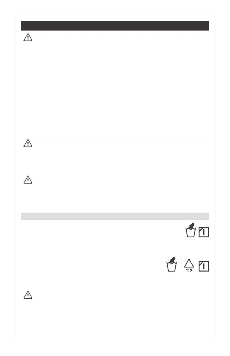 bleach solution for 10 minutes. Rinse thoroughly with clean water. Air dry.