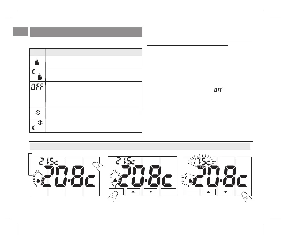 Il termostato prevede 5 modalità di funzionamento: