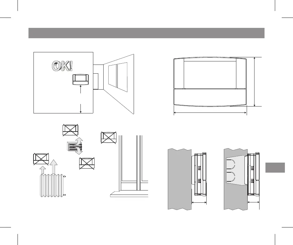 Das Thermostat bevorzugt in einer Höhe von 1,50 ÷ 1,60 m vom